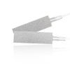云母加熱器是以云母板為絕緣材料的耐高溫加熱器。其上端面與上云母片的下端面相粘合,下端面與下云母片相粘合。發(fā)熱體經(jīng)由電連接線與外部電源相連接,分布在發(fā)熱體兩側(cè)的上云母片與下云母片高溫膠熱壓一體成型,整體呈平板式。本公司對蓋板進(jìn)行了專利設(shè)計(jì),該設(shè)計(jì)并不妨礙電連接線的固定,且使得使用者不會直接接觸上云母片,大大的提高了使用者使用的舒適性。
